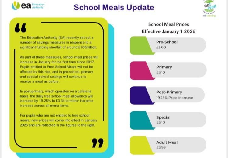 From January 1st 2026 there with be an increase to the price of school meals. This is out of our control.